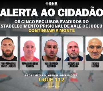 Alerta dado pela GNR: «ALERTA AO CIDADÃO Os cinco reclusos evadidos do Estabelecimento Prisional de Vale de Judeus continuam a monte.Enquanto decorrem as diligências de investigação criminal ... Ler mais